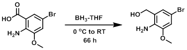 To a 0.24M THF suspension of the SM (71.7 mmol) at 0 C was added BH3-THF (1M, 220 mmol). The reaction mixture was stirred under Ar at RT for 66 h then quenched by addition of EtOH (15 mL) at 0 C and stirred an additional 15 min. The mixture was poured into H2O and extracted with DCM. The combined organics were washed with brine, dried (Na2SO4), and concentrated to provide the crude product as a white solid. [10.16 g, 62%]