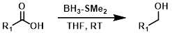 硼烷(BH3)试剂通常能够在酯的存在下选择性还原羧酸。硼烷-二甲基硫醚(BH3-SMe2)比硼烷-四氢呋喃(BH3-THF)更稳定,并且可以以更高的浓度(10 M)获得。BH3-SMe2的一个缺点是其难闻的气味。[2][3]