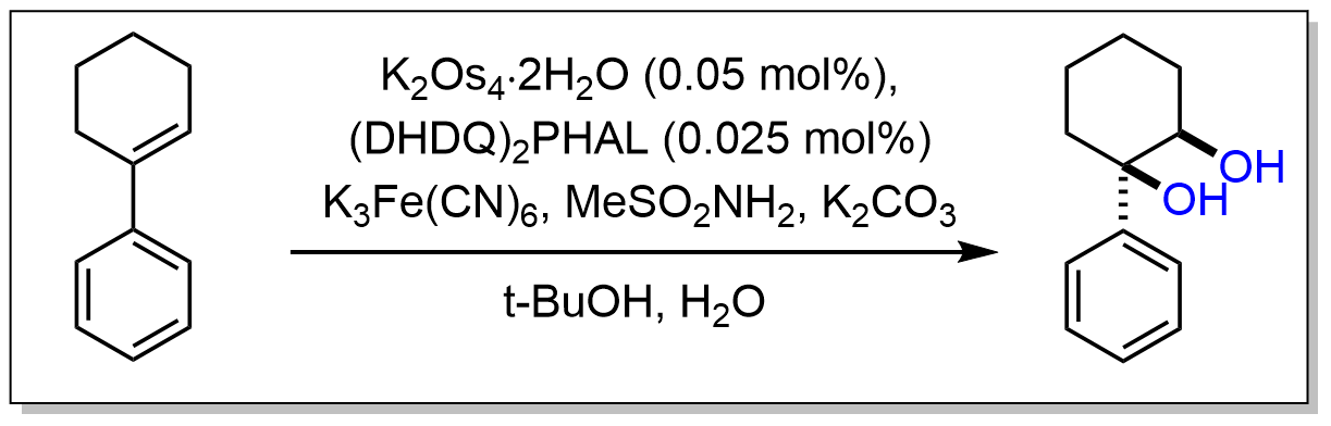 双羟化是一种将烯烃转化为邻二醇的过程。虽然有许多方法可以实现这种氧化,但最常见和直接的方法是使用高氧化态的过渡金属(通常是锇或锰)。金属通常用作催化剂,同时需要某些化学计量的氧化剂。[1] 此外,还开发并应用了其他过渡金属和非过渡金属的方法来催化该反应。