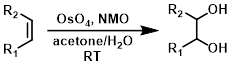 四氧化锇(OsO4)与N-甲基吗啉N-氧化物(NMO)作为助氧化剂一起使用时(Upjohn双羟化反应),仅需催化量的有毒OsO4。常见的溶剂组合包括丙酮/水和叔丁醇/水。[1][2]
