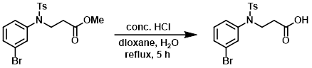 A solution of the SM (15.23 g, 37.06 mmol) in conc. HCl (21.80 mL), H2O (68.6 mL), and dioxane (192.6 mL) was stirred at reflux for 5 h. The mixture was concentrated to half its volume (~130 mL), neutralized with sat aq NaHCO3 to PH = 8-9, and extracted with EtOAc (3 x 80 mL). The combined organics were back-extracted with H2O (80 mL). The combined aq layers were acidified to pH = 3 with conc. HCl and extracted with EtOAc (3 x 80 mL). The combined organics were dried (Na2SO4) and concentrated to provide the product as a brown oil. [7.00 g, 48%]