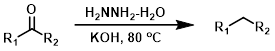 Wolff-Kishner反应能给使用肼作还原剂,还原酮到亚甲基,需要强烈的碱性条件,因此不能够兼容对碱敏感的基团。