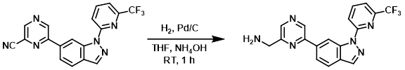 A mixture of the SM (45 mg, 0.12 mmol) and Pd/C (5 mg) in 4:1 THF/NH4OH (2.5 mL) was stirred under H2 at RT for 1 h. The reaction mixture was filtered, concentrated, and purified by Prep HPLC [5-95% (MeOH)/(H2O with 0.05% NH4OH)] to provide the product as a white solid. [10 mg, 22%]