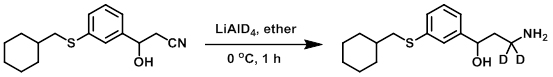 To a solution of the SM (0.792 g, 2.88 mmol) in dry ether under argon at 0 C was added LiAlD4 (0.225 g, 5.35 mmol). The reaction was stirred for 1 h, after which time was slowly added sat aq Na2SO4. The mixture was stirred until a precipitate formed, then anhydrous MgSO4 was added. The mixture was filtered and purified by flash chromatography (10-50% EtOAc/hexane) to provide the product as a colorless oil. [0.226 g, 28%]