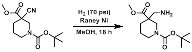 To a solution of the SM (6.0 g, 22.0 mmol) in MeOH (60 mL) was added Raney Ni (6.0 g). The reaction was stirred under H2 at 70 psi for 16 h, after which time the mixture was filtered through celite. The filtrate was concentrated in vacuo and the resulting material was purified by a neutral alumina column to provide the product as a thick brown liquid. [4.2 g, 69%]